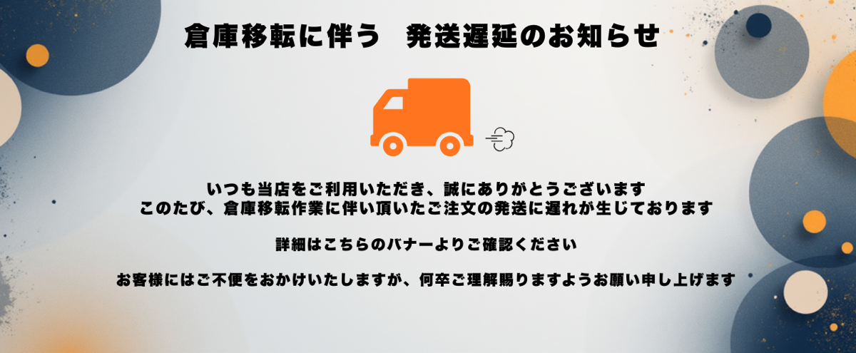 いつも当店をご利用いただき、誠にありがとうございます。 このたび、倉庫移転作業に伴い、下記期間中にいただいたご注文の発送に遅れが生じます。 ▼ 対象期間 2025年10月27日(月)〜11月9...